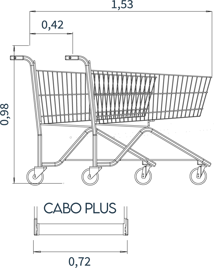 • Carrinho para transporte de mercadorias de uma cesta, com capacidade de 200 litros.